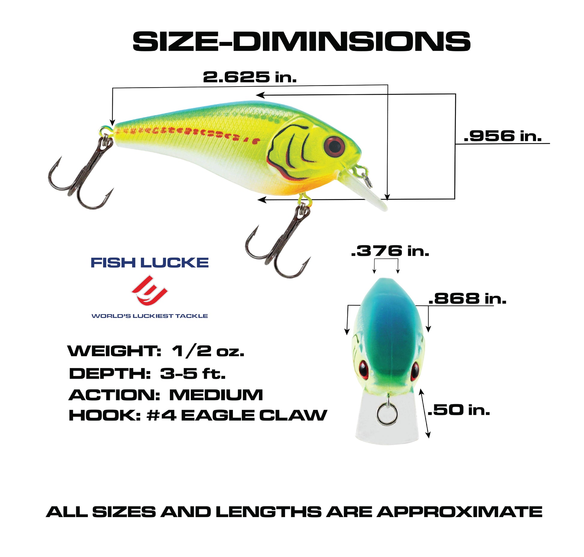 Attack the shallows with the Fish LuckE 2 inch Squarebill Crankbaits. Offering quality performance at a reasonable price, the 2 inch Squarebills consistently produce regardless of the fads that come and go in fishing. Bass will always chase baitfish, and the Luck-E-Strike Strike Squarebill Crankbaits will always deliver a realistic, silent (no-rattles) presentation second-to-none in shallow waters.