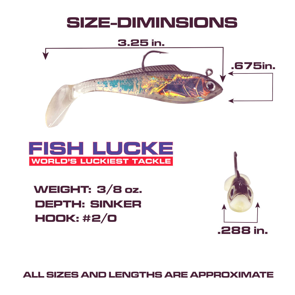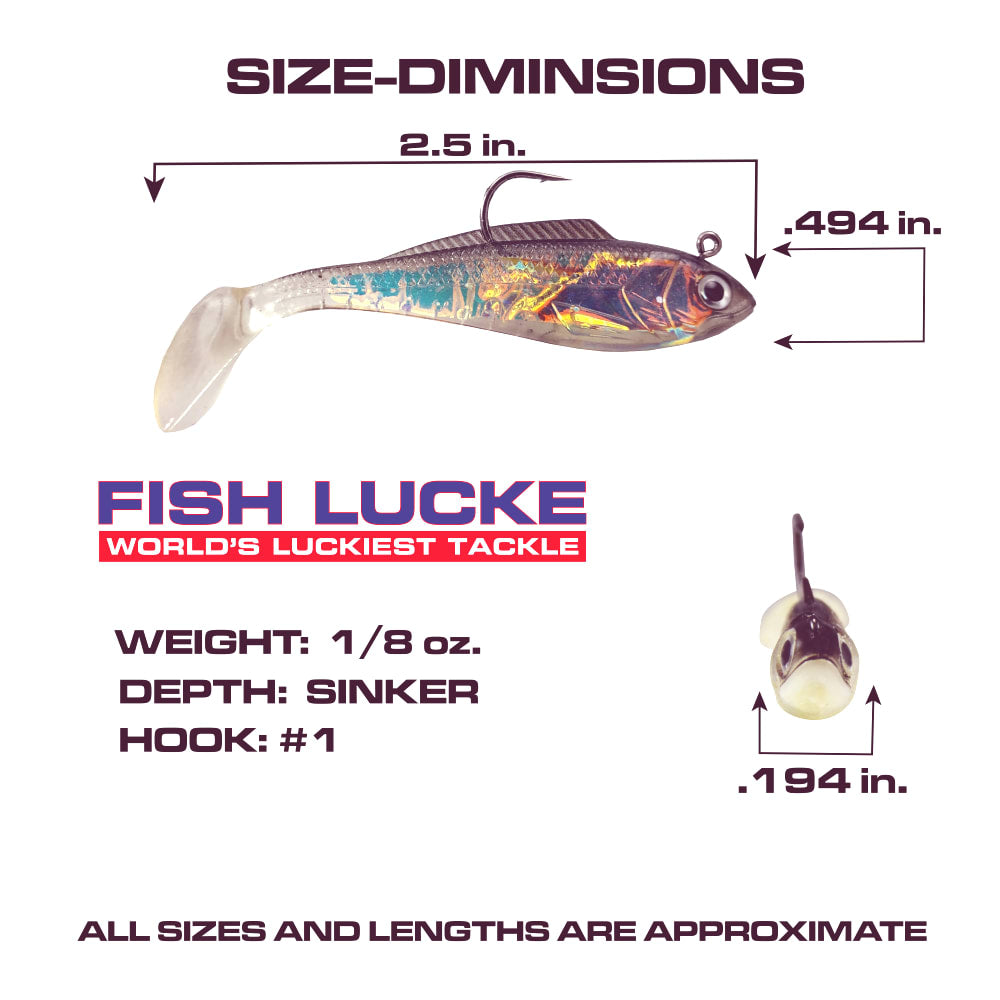 The Luck E Strike Mirror Image Shad has a reflective mylar insert that creates awesome flash when the lure rocks from side to side emulating a live bait fish comes in four sizes 2 inch, 3 inch, 4 inch and 7 inch